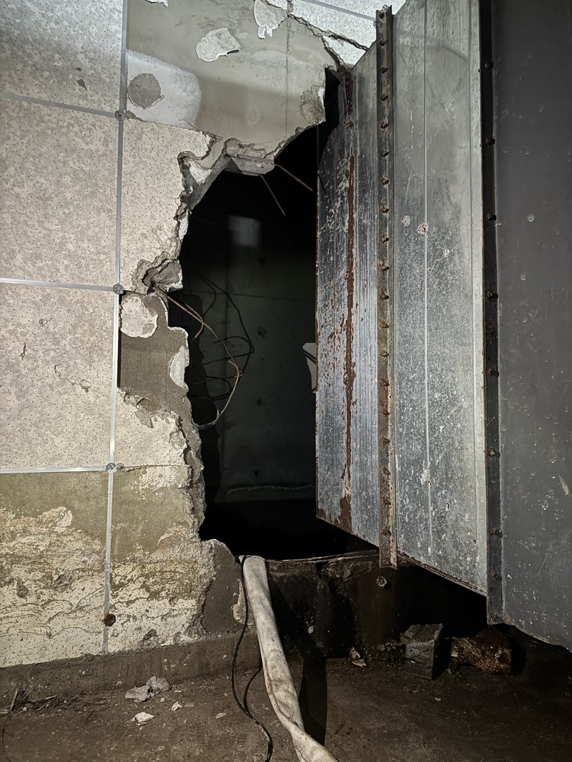 设备机房砸墙排水 地库暗藏“密室”深坑